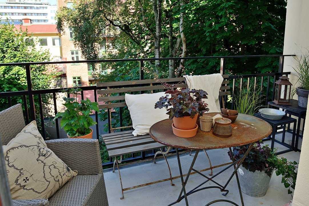 Все виды мебели могут обладать компактными размерами. Для небольшого балкона можно использовать диван или кровать. Также отличным решением для отдыха станет кресло-качалка.