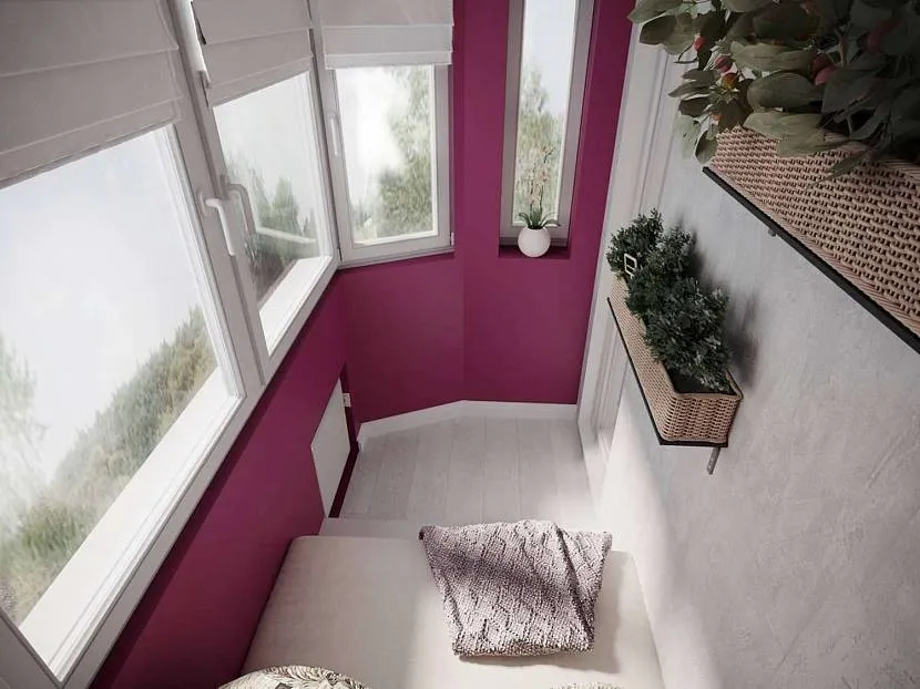 Но при оформлении обязательно учитывайте сторону, на которую выходит балкон. Если он «смотрит» на юг, то вам стоит немного приглушить солнечный свет. Для этого подойдут прохладные оттенки – лиловый и нежно-голубой.
