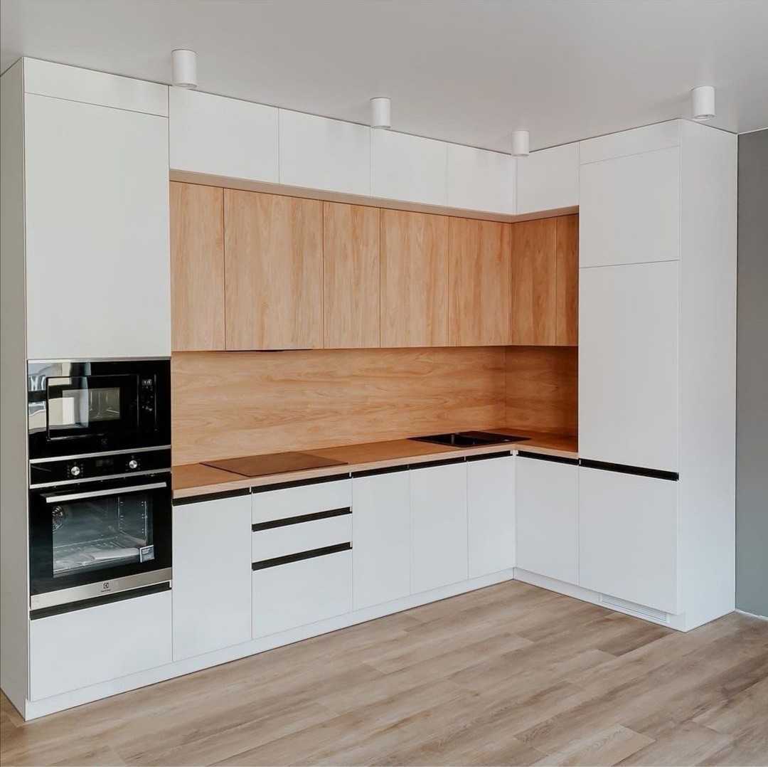 Белая глянцевая кухня с деревянной столешницей может применяться в любом современном стиле. Именно глянец подчеркнет технологичность и лаконизм современного направления. В этом случае могут быть реализованы хай-тек, модерн, скандинавский, минималистичный, восточный с уклоном в предельную лаконичность.
