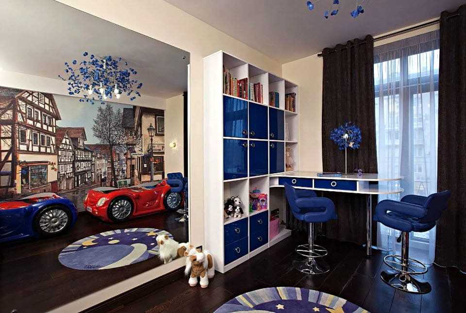 Такой дизайн очень популярен для мальчиков младших возрастов. Здесь фантазию можно не ограничивать. Тематика может быть абсолютно разной, например, космическая комната, комната пирата, морская тематика или комната авто. Такие комнаты очень яркие и весь декор оформляется под заданную тему.