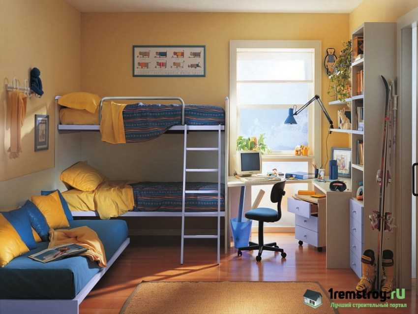 Если в комнате высокие потолки, для двоих детей можно выбирать двухъярусные кровати, при потолках ниже 2,7 метра от такого варианта лучше отказаться – на высоте более двух метров ребенок может ощущать нехватку кислорода. В этом случае стоит рассмотреть иные варианты организации спального места: