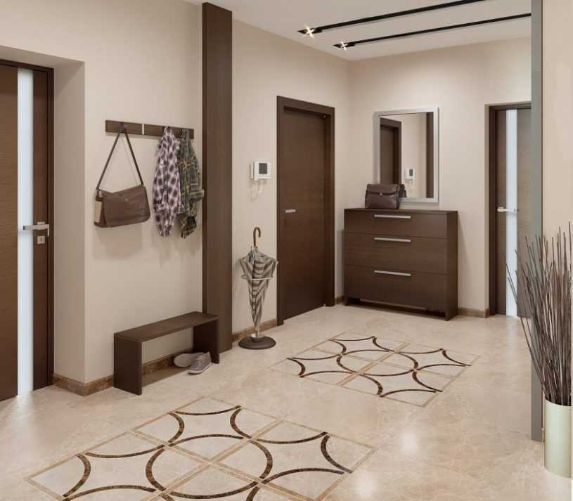 Лучшее что можно сделать в прихожей это керамогранит: он прочен и устойчив к влаге, но грязь, которая скапливается в швах, может испортить внешний вид пола. Линолеум не обладает этими недостатками, но следует выбирать покрытие с качественной имитацией фактуры.