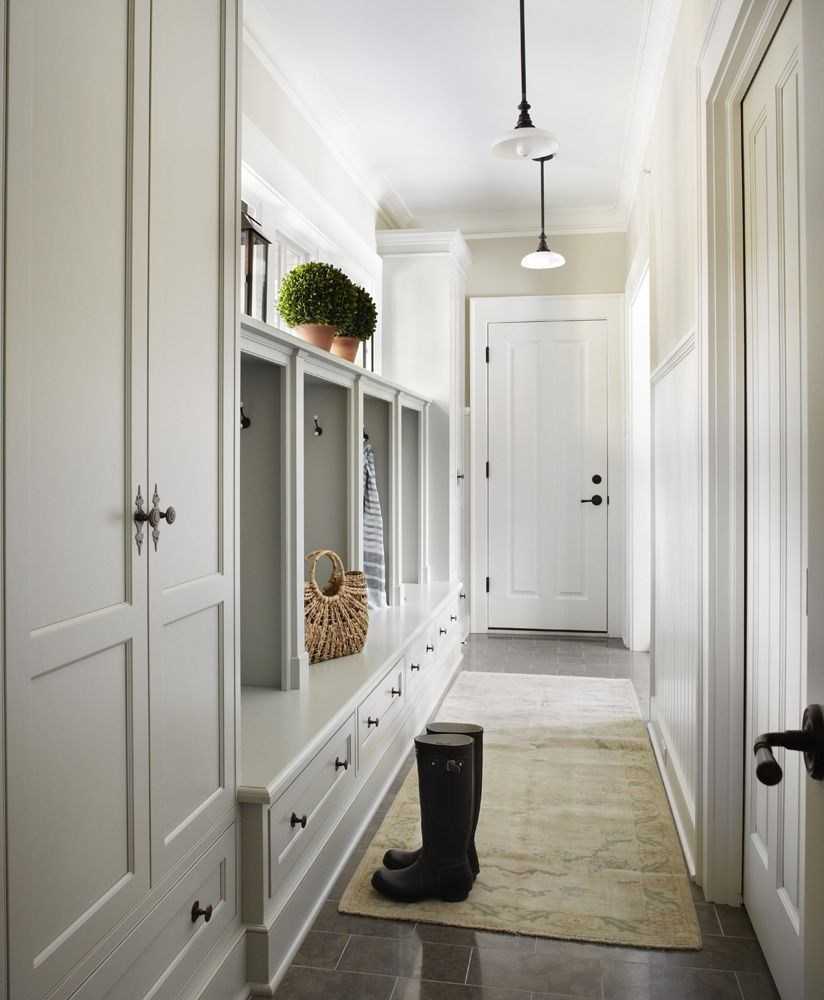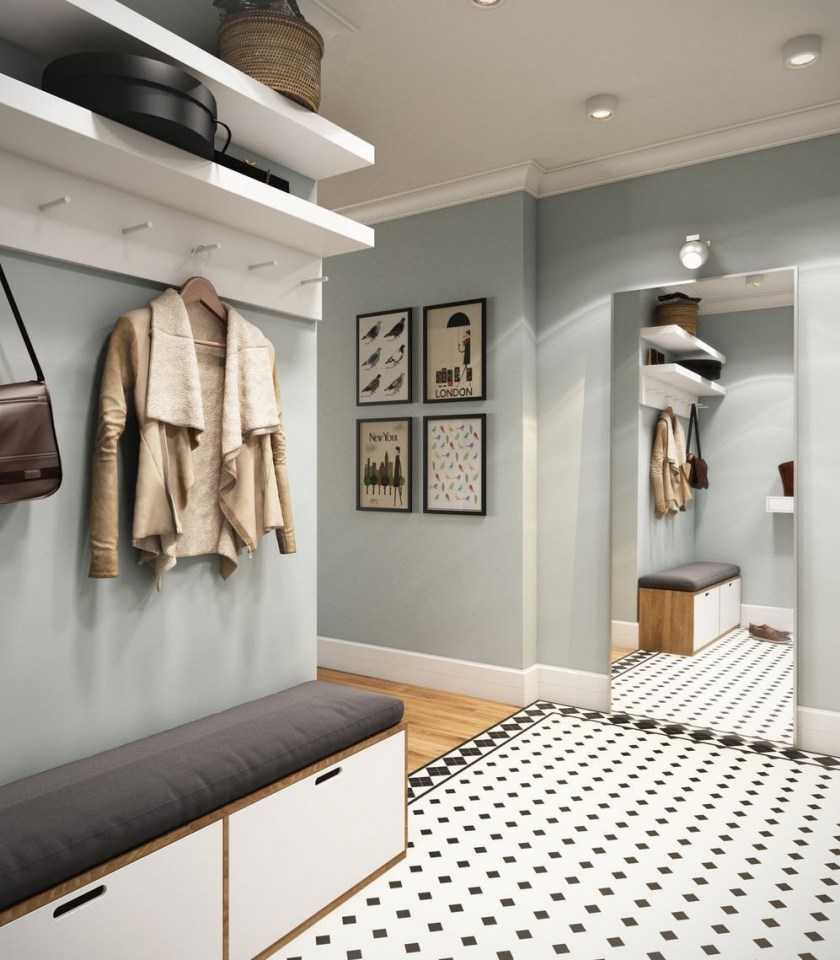 Если прихожая маленькая или не имеет перегородки с большой комнатой, то стоит ограничиться открытыми вешалками и обувницей. В квартире распашонке проходную зону следует отделить, чтобы уличная грязь не попадала в жилые комнаты. Если коридор имеет г- образную форму, то дополнительного зонирования не требуется. То же касается прихожей в форме буквы «т»: её конструктивные особенности позволяют разместить у входа всё необходимое, а оставшееся место отвести под холл.