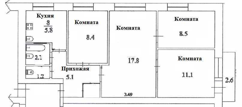 Перепланировка 4 х комнатной хрущевки: фото «до»