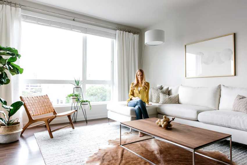 Гостиная комната в стиле минимализм должна купаться в обилии естественного освещения