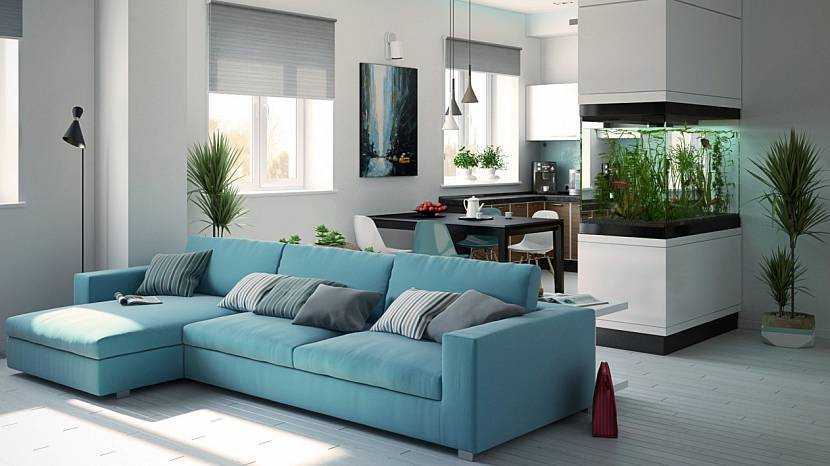 Диван на роликах или колёсиках легко развернуть из спальной зоны к зоне гостиной.