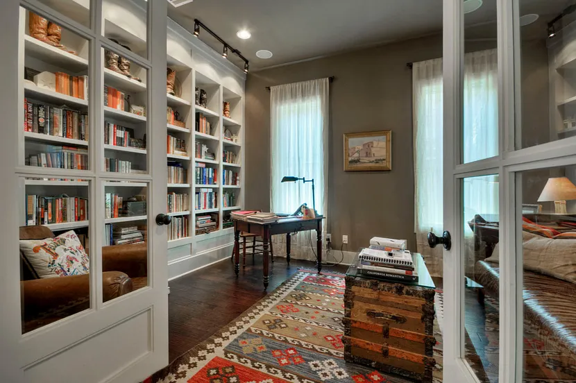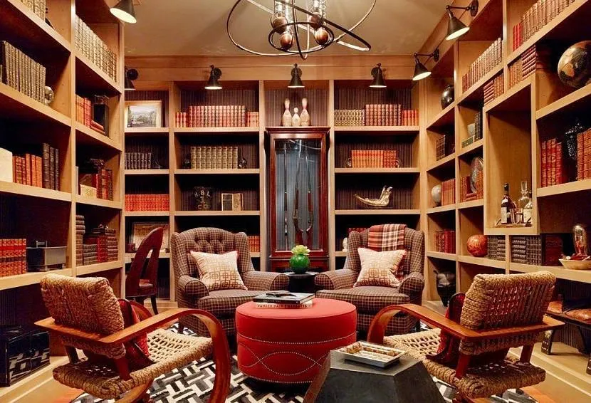 Большая комната – это большие возможности. Простор для фантазии тут огромный, можно воплощать самые смелые решения, например, создание потайной комнаты за книжным шкафом. Главное, не переусердствовать и не забить пространство излишним количеством мебели и аксессуаров, иначе получится, в лучшем случае, выставочный зал, а в худшем – беспорядочная большая кладовка.