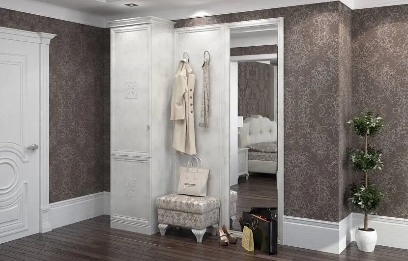 Добавит в обстановку чистоты и легкости и выгодно выделит другие элементы декора прихожей. Такое оформление стен, станет отличным вариантом для небольших или узких помещений.