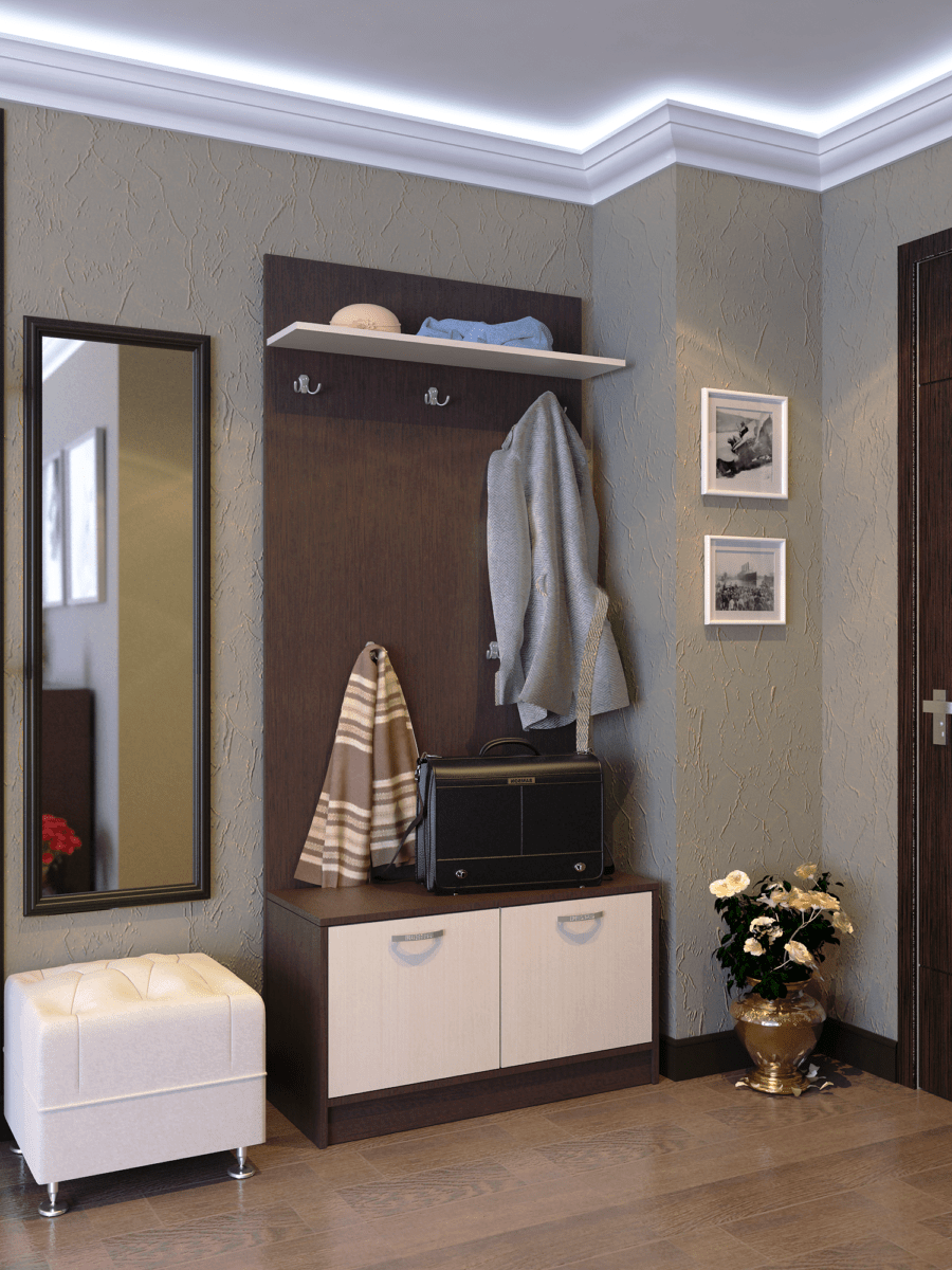 Проблема в том, что стандартная прихожая площадью от 7 до 11 квадратных метров – это узкий маленький коридор, в который выходят двери комнат, кухни и санузла. Гарнитур «прихожая» делает его ещё уже и скучнее. Когда дизайнеры настаивают на том, что верхняя одежда должна быть в шкафу и не портить интерьер, они имеют в виду просторные холлы современных элитных квартир.