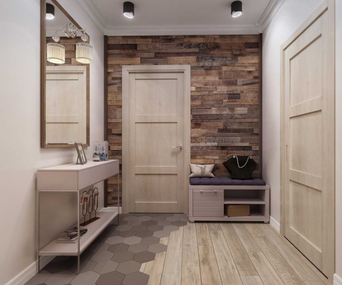 Деревянная отделка вне моды, поэтому никогда не устаревает и всегда придется кстати. Для прихожей хороши модные в 2019 светлые древесные тона, вроде ореха