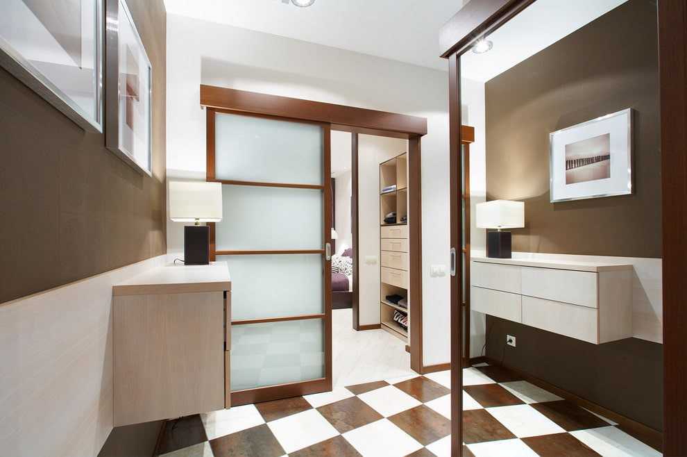 Коридор — первое помещение, куда входят домочадцы и гости. Оформление прихожей должно гармонировать с общим стилем квартиры. Лучше всего выбирать нейтральный дизайн, прочные материалы, немаркие цвета. Различные варианты интерьера прихожей в однокомнатной и двухкомнатной квартире можно посмотреть в подборке фото ниже.