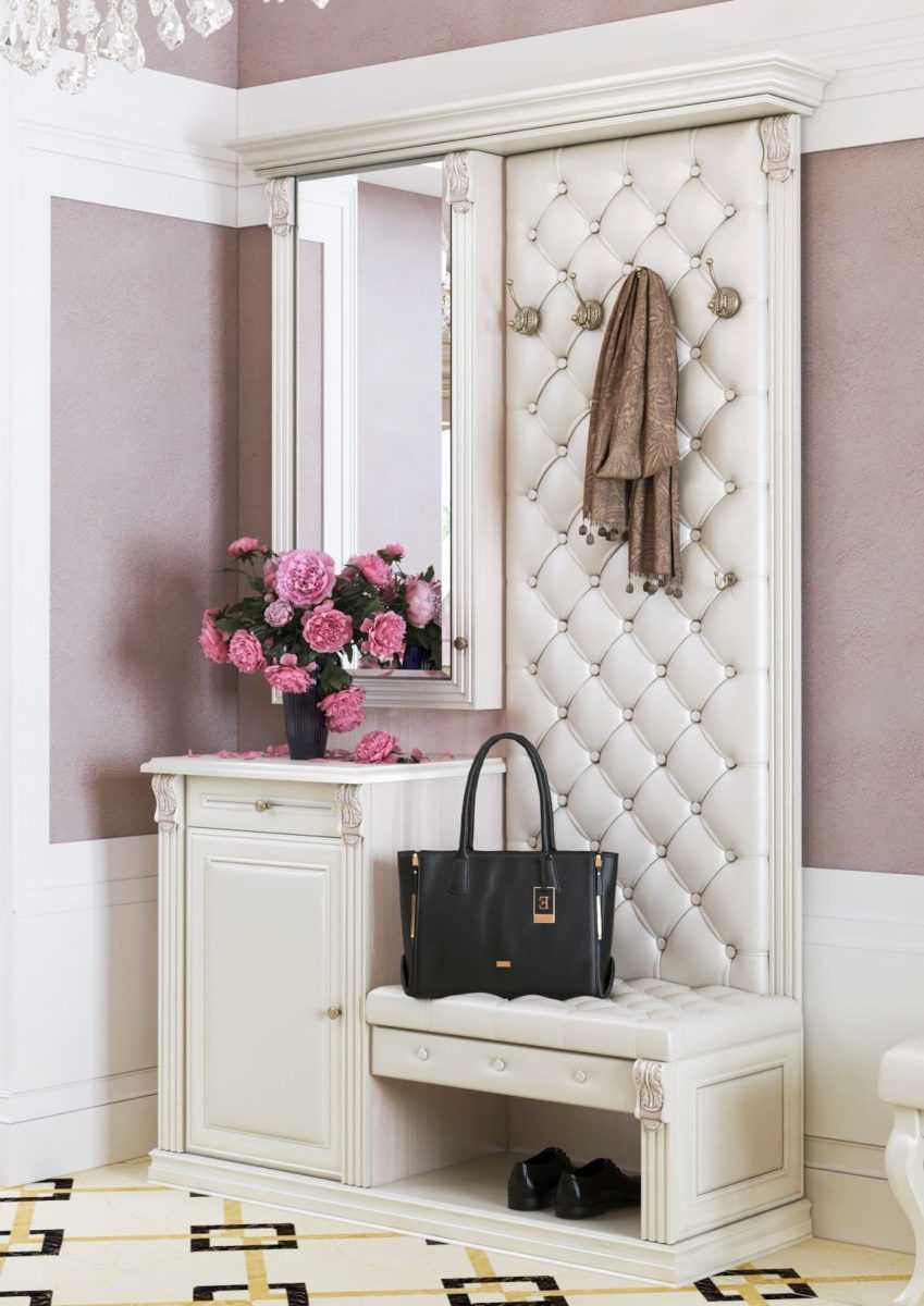 Если прихожая с гладкими стенами и достаточно просторна, в качестве декоративных элементов можно использовать молдинги, лепнину, фальшпанели. Подобный декор внесёт разнообразие, разбавив монотонный интерьер. Такая отделка подчеркнёт изысканность дизайна и лучше всего впишется в один из классических стилей.