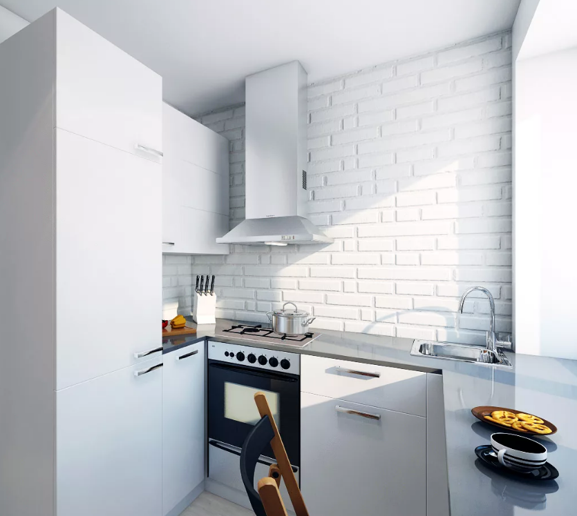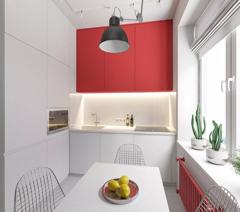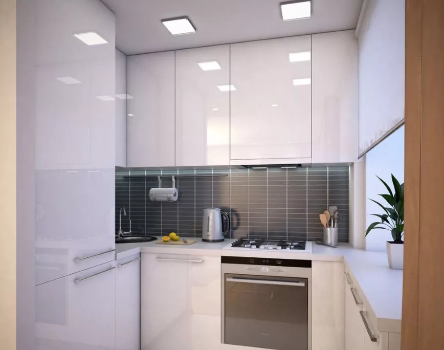 Владельцам небольших кухонь стоит помнить, чем меньше уголков, извилин и впадин, которые выделяет свет, тем лучше