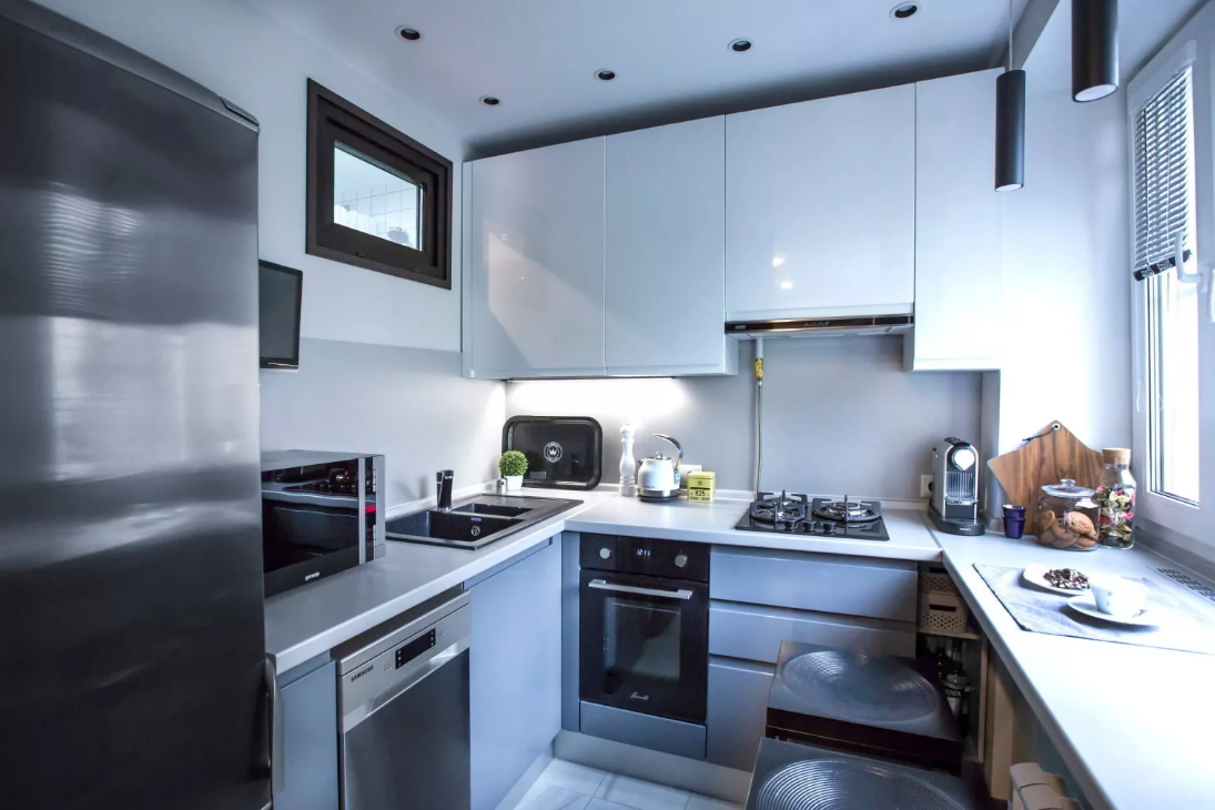 - Лучшим выбором для небольшой кухни станет встраиваемая техника и мебель.