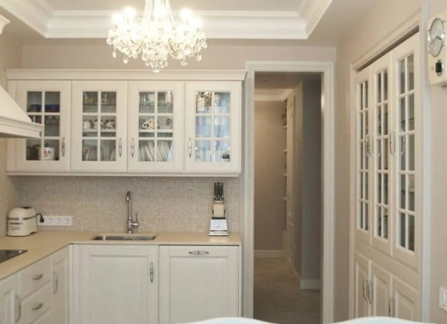 Маленькая кухня, оформленная в кремовых тонах, оттенках какао или универсальном белом цвете будет смотреться стильно, хорошо и уютно