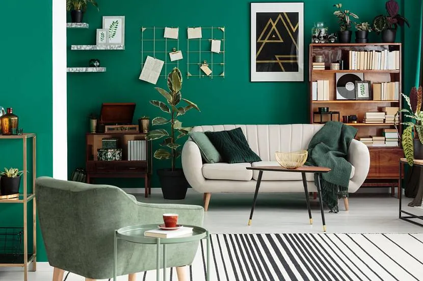 Интерьер с нотками ретро-стиля в насыщенных зеленых оттенкахИсточник elements.envato.com