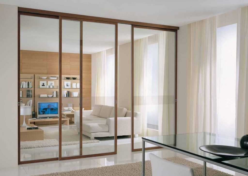 - Раздвижные системы. Они могут складываться гармошкой. Для лучшего проникновения света подойдут модели из полупрозрачного пластика, матового стекла. Конструкция позволяет сдвигать их для объединения пространства.