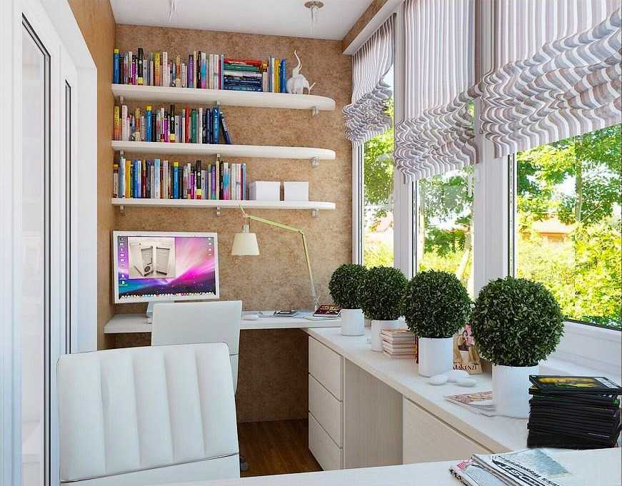 Рабочее место или мини-кабинет. Часто приходится брать работу на дом, а уединиться негде? Сделайте рабочее место на присоединенном балконе.
