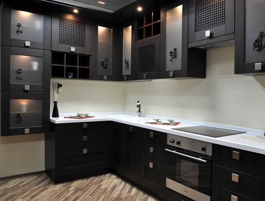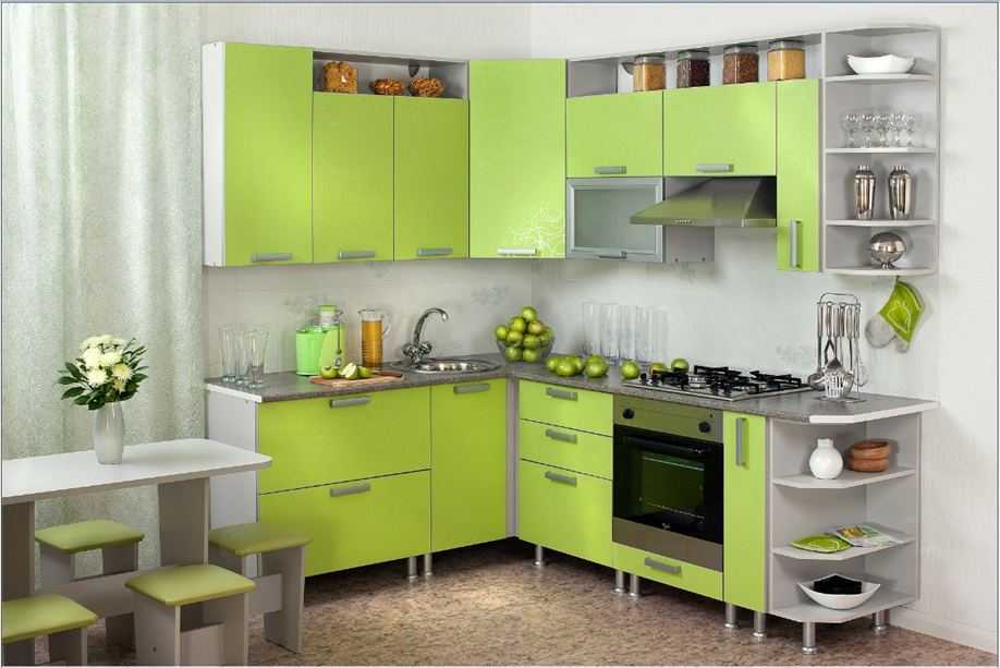 Интерьер может быть самым разнообразным – он подбирается в соответствии с площадью помещения и вкусами хозяев. Угловая кухня бывает настолько вместительной, что удается отказаться даже от навесных шкафов. Их заменяют выдвижными каруселями и открытыми полками, специальными цоколями в тубе для выкатных ящиков.