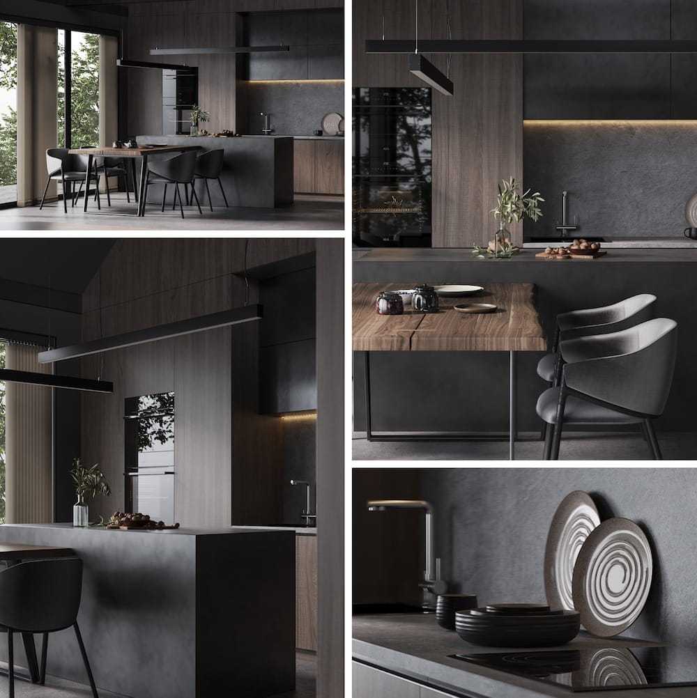 Кухни в индустриальном стиле характеризуются наличием черного мраморного верха с теплыми дубовыми поверхностями, что добавляет шарма всей композиции. Кроме того, в состав кухни входит несколько структур, в которых как бы переплетаются стеклянный стеллаж с блестящей алюминиевой отделкой выцветающего атласного цвета. Когда дело доходит до современного дизайна кухни, сочетание прочных темных материалов и теплых деревянных конструкций (как «по старинке») всегда является выигрышным.