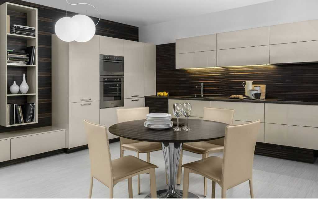 удобное оснащение – еще один признак современной кухни. Выбирайте мебель, удобную в использовании, имеющую выдвижные ящики, полки с вращающимся механизмом, детали с возможностями трансформации. Так вы не только сможете существенно сэкономить время на поиск нужных кухонных принадлежностей, но и освободите максимум пространства;