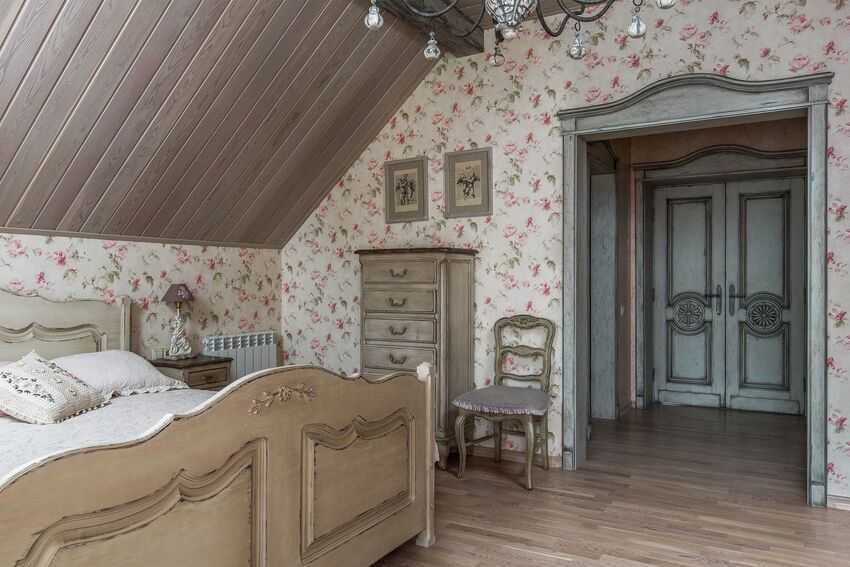 Отделка деревом выполняется по нижней части стены, она же служит дополнительной защитой поверхности стен от загрязнений и повреждений. Так же в интерьере в стиле прованс доской может быть полностью отделана одна из стен.