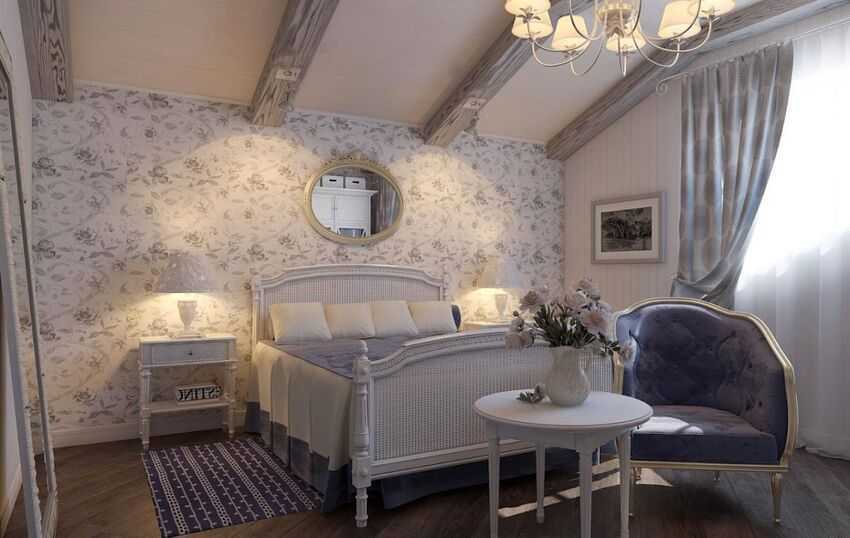 Лаконично и изящно будут украшать комнату в стиле прованс обои под штукатурку или с легким рисунком, например вензеля или полосы. Цвет в дизайн комнаты можно добавить при помощи текстиля и предметов декора.