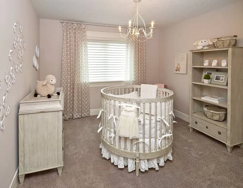 Детскую кроватку в спальне родителей часто располагают в ближайшем углу от ложа взрослых. Чтобы шум из внешних помещений не мешал, лучше поставить мебель младенца дальше от двери. Размещение рядом с проемом грозит сквозняками и постоянными болезнями. В длинной узкой комнате для мебели дизайнеры рекомендуют оборудовать нишу.