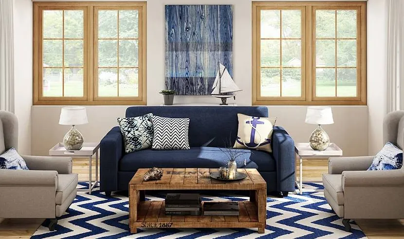 Дизайн гостиной в морском стилеИсточник legko.com