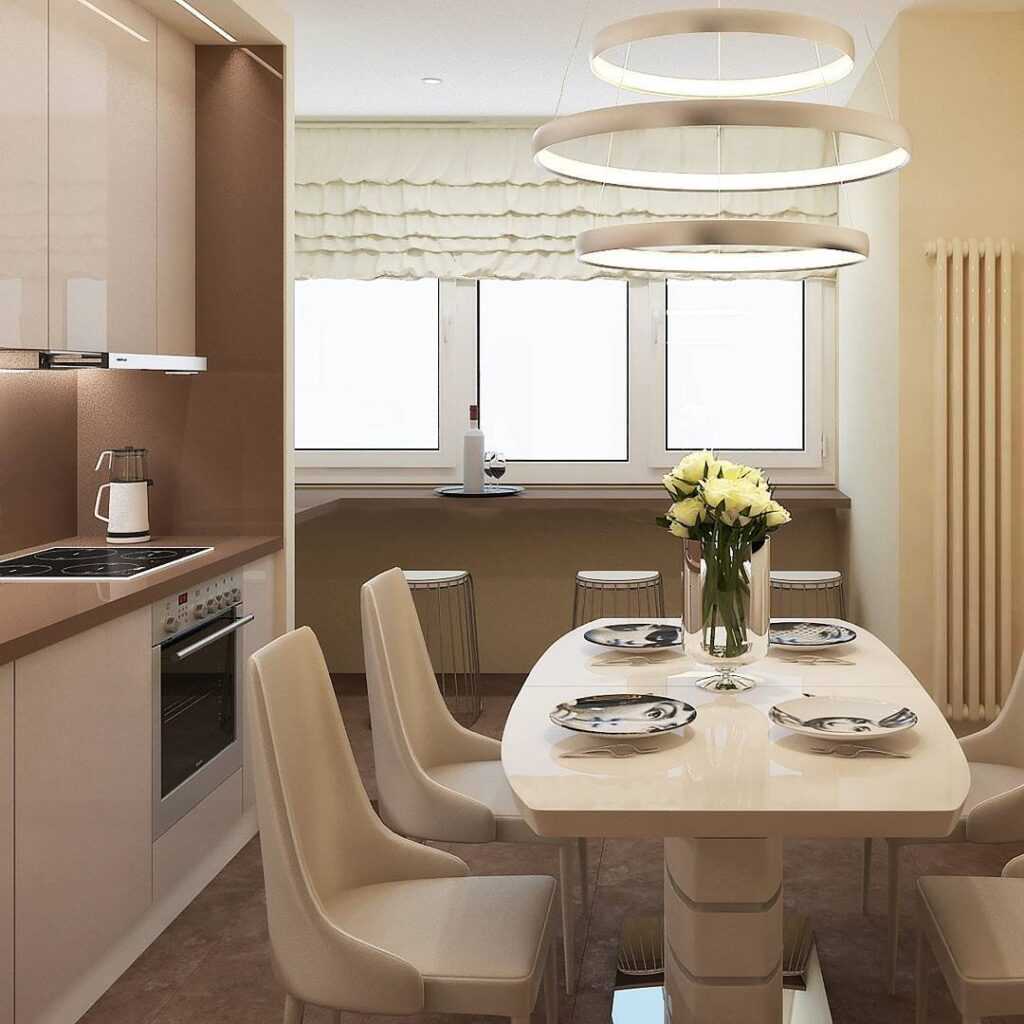 За счет перепланировки 9 метровой кухни и совмещения с балконом, полезная площадь значительно увеличивается. После утепления лоджии, ее можно переоборудовать в обеденный сегмент и место для отдыха или обставить шкафами и холодильником. При частичном сносе перегородки, подоконник часто переделывают в барную стойку.