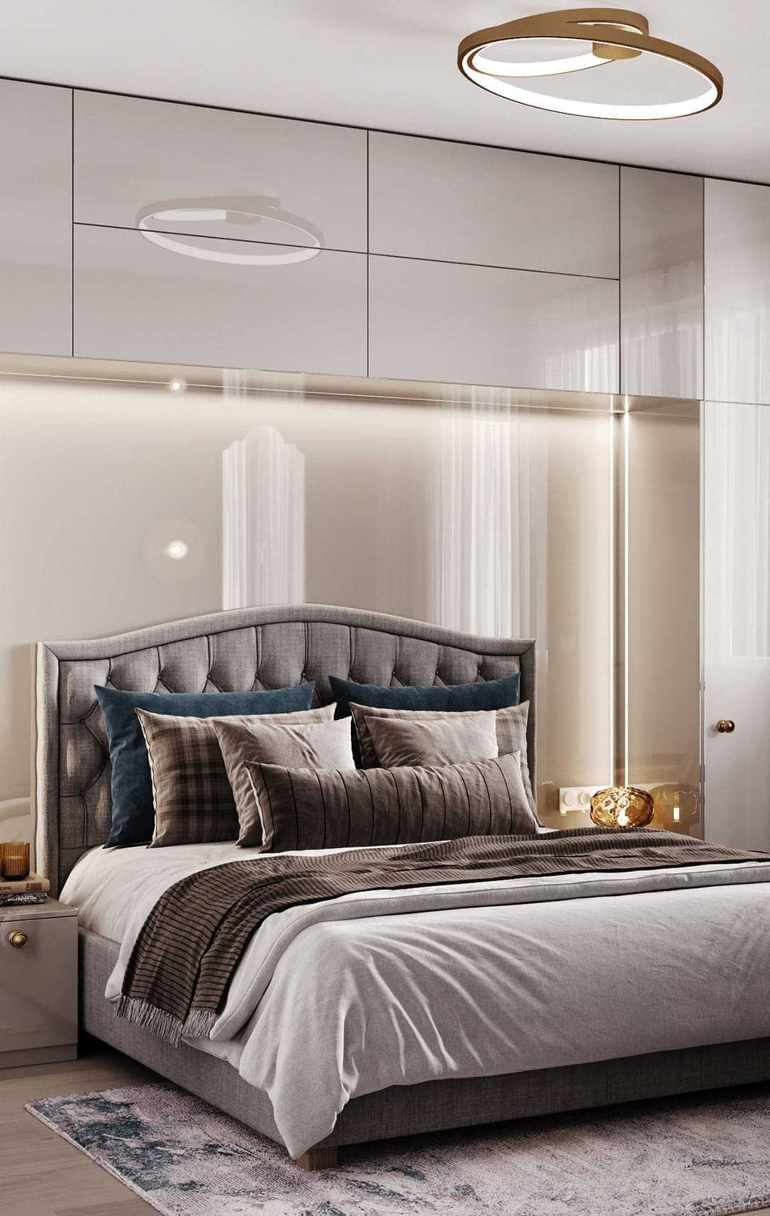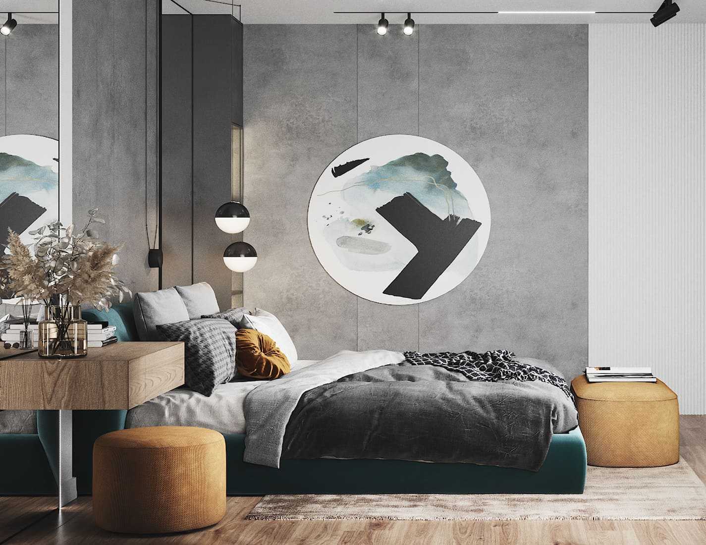 Нейтральный серый цвет отлично подходит для спальни площадью 9 кв.м., так как это очень спокойный и благородный тон. В интерьере можно использовать как один его оттенок, так и играть за счет разницы в насыщенности или использовать другие приемы.