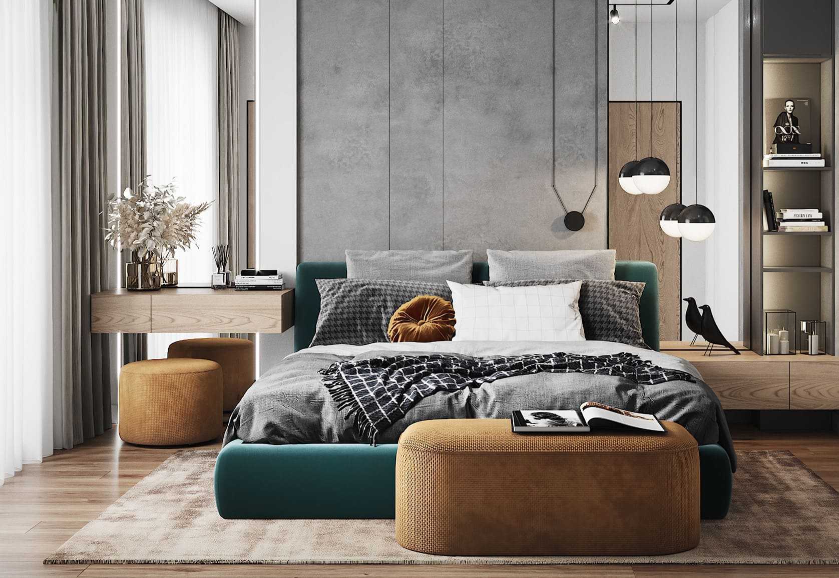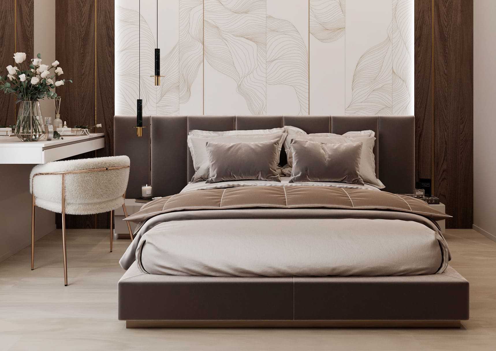 Для дизайна спальни 9 кв.м. хорошо подойдут коричневые, синие и темно-серые тона. Чтобы удержать баланс насыщенности, используйте светлое постельное белье и декор.