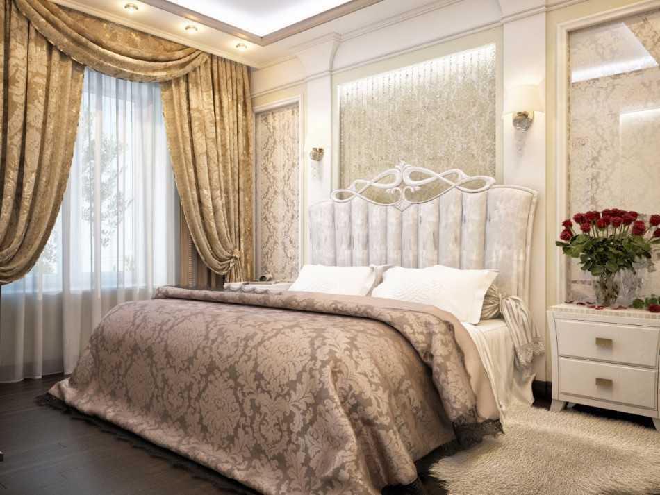 Ламбрекены отлично подходят для портьер к окну спальни в классическом стилеИсточник homeli.ru