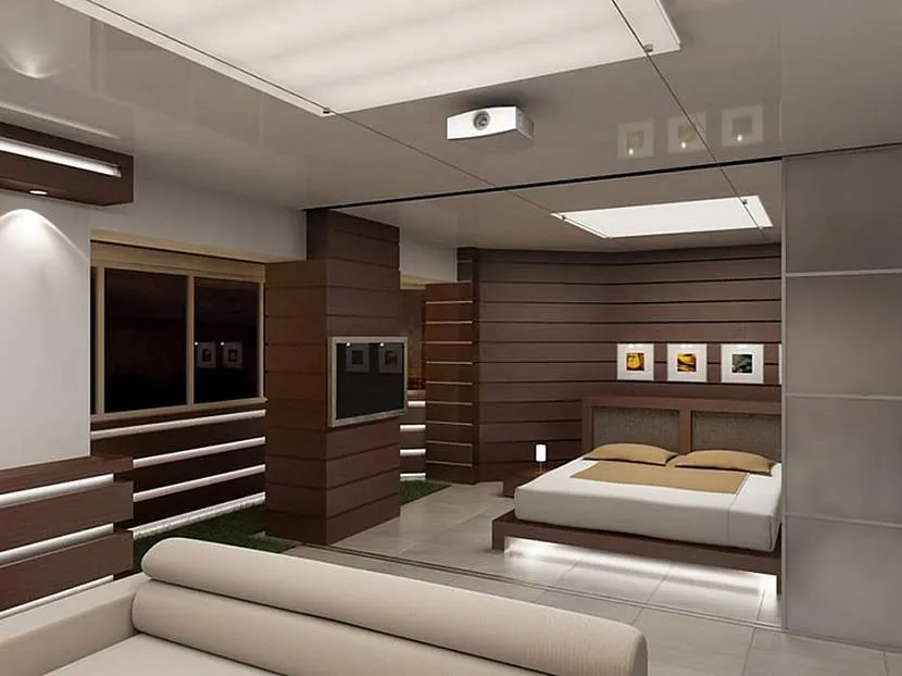 Зонирование гостиной-спальни в стиле хай тек