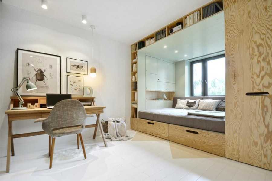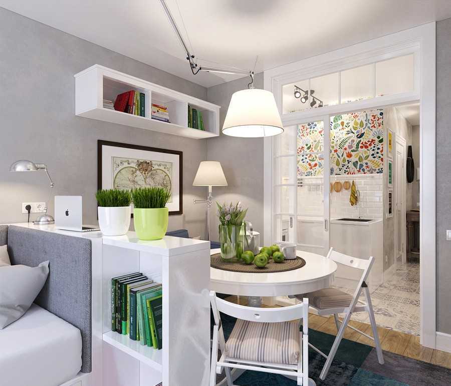 В маленькой квартире пространство должно быть задействовано по максимуму. Для этого стоит использовать мебель-трансформер. Например, диван-кровать или шкаф-стол. Зону спальни от гостиной можно отделить мобильной перегородкой в виде компактного стеллажа для книг.