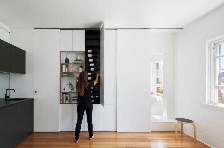 Тонкие перегородки легко заменяют полноценную межкомнатную стену, только они тоньше и легче. Это хороший вариант, если ты хочешь отделить гардеробную или кладовку для вещей. Те же перегородки используются для создания встроенных систем хранения и скрытого монтажа шкафов.