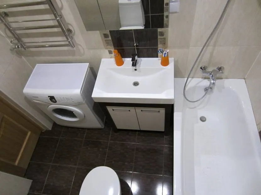 В зависимости от того, где расположена дверь, унитаз и душевую кабину можно расположить в дальних углах, а небольшую стиральную машину – при входе. Размеры душевой кабины тоже должны быть самые маленькие. В противном случае, в ванной останется мало свободного места.