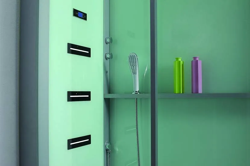 - Встроенный душ за прозрачными перегородками до потолка – для активных людей, ценящих максимальную свободу. Последние достижения в сантехнической области позволят обзавестись душевой станцией, заменяющей функционал отдельной кабины.