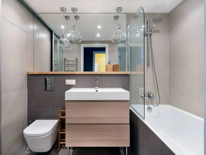 - Душевая кабина – позволит освободить пространство, но подойдёт из-за внешнего вида далеко не к каждому стилю.