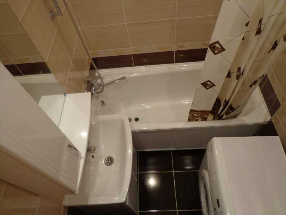 Кроме того, на этом ограниченном пространстве удастся разместить тумбу под раковиной (лучше выбирать встроенный вариант), зеркальный шкафчик над ней, и, возможно, еще один навесной шкаф на свободной части стены.