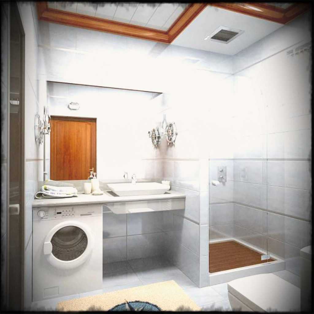 - Стиральную машинку в ванной можно будет установить лишь в одном месте – под раковиной. Следовательно, от традиционной тумбы придётся отказаться и одним местом для хранения станет меньше.