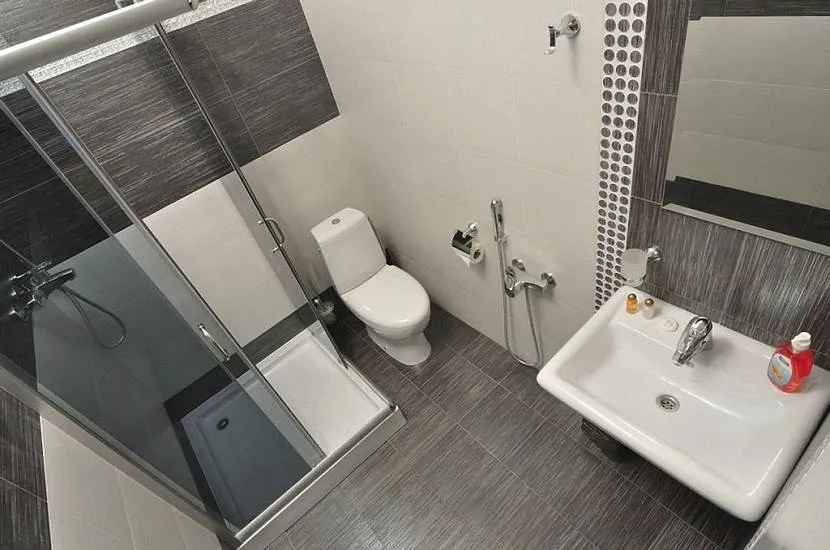 - В небольшом пространстве первым делом устанавливают унитаз и заполняют мебелью углы. Учитывают ширину и длину комнаты, высоту потолка, чтобы уместить душ, полотенцесушитель, бойлер;