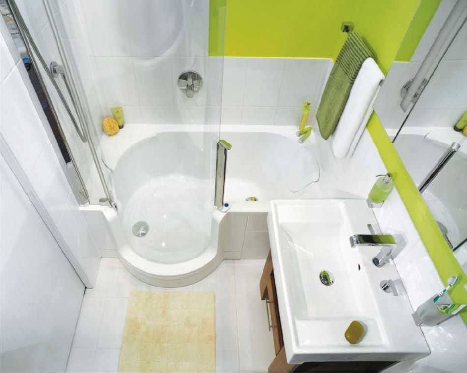 - Вместо объемной ванны длиной 1,7 м используют сидячие (укороченные) варианты, душевые кабинки. Компактные размеры последних позволяют пользоваться комфортными водными процедурами даже в маленьком помещении. Популярностью пользуются угловые ванны;