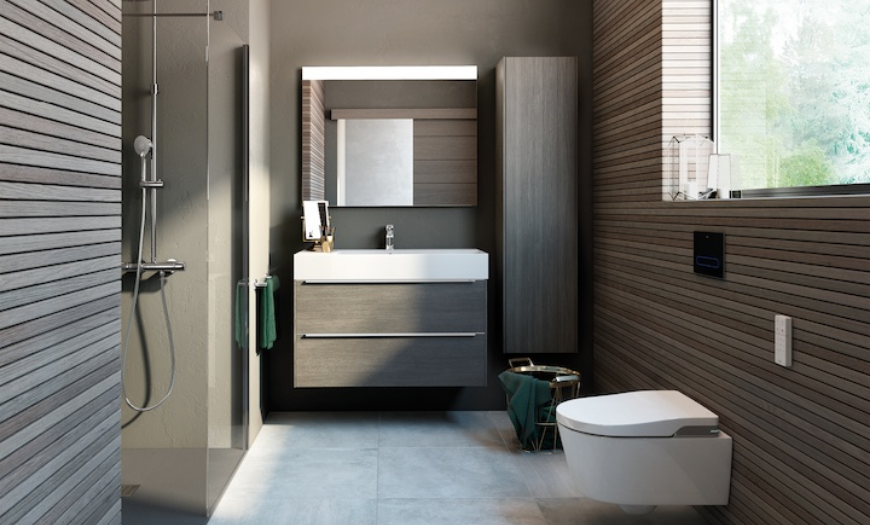 Подвесной унитаз смотрится современно и помогает сэкономить место. К тому же пол под такой конструкцией легче моется из-за отсутствия необходимости тратить время на чистку стыков, в которых скапливается больше всего грязи.
