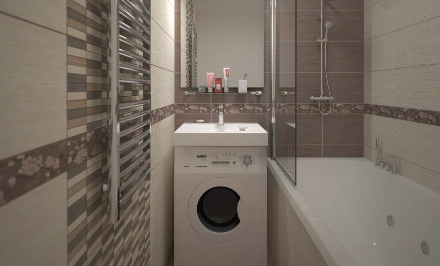 Вариант дизайн ванной в «хрущёвке» со стиральной машиной