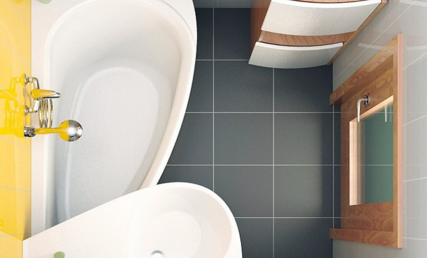 Вся сантехника должна быть выдержана в едином стиле и цветовой гамме. Для маленьких помещений лучше использовать угловые раковины и ванны, поскольку они позволяют освободить пространство.