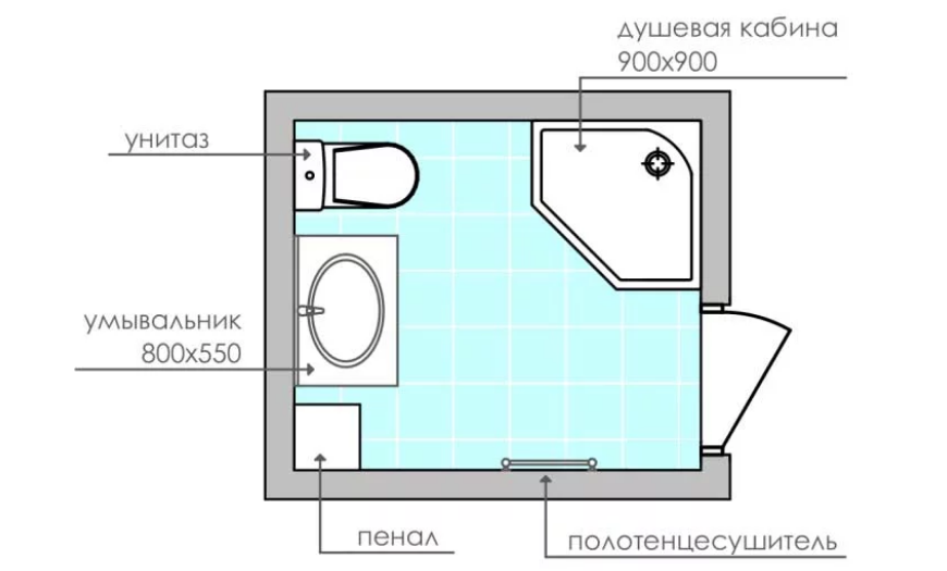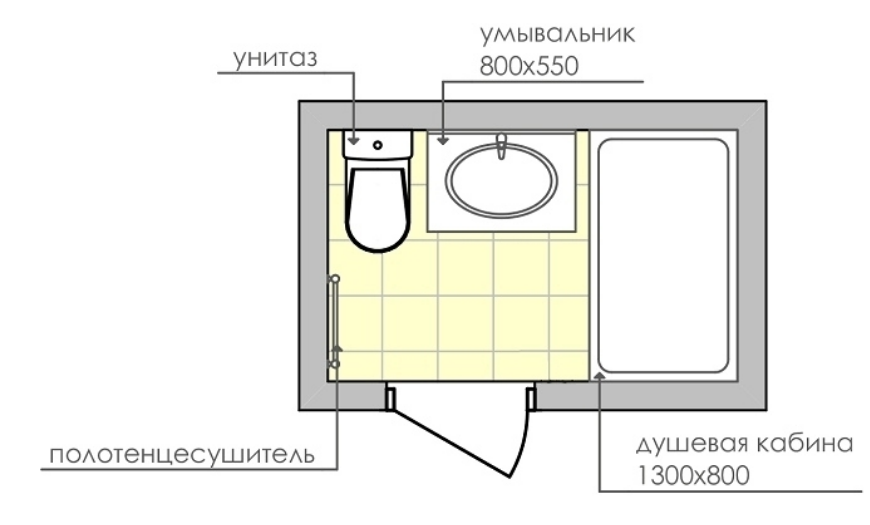 Планировка санузла в хрущевке. Душевая кабина вместо ванны