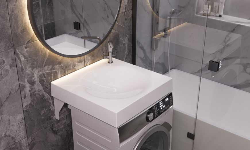 В малогабаритных квартирах нехватка площади ощущается не только в санузле, но и на кухне или в прихожей. Поэтому стиральную машину – необходимый атрибут современной жизни, стараются установить там, где её присутствие наиболее логично. То есть в ванной.