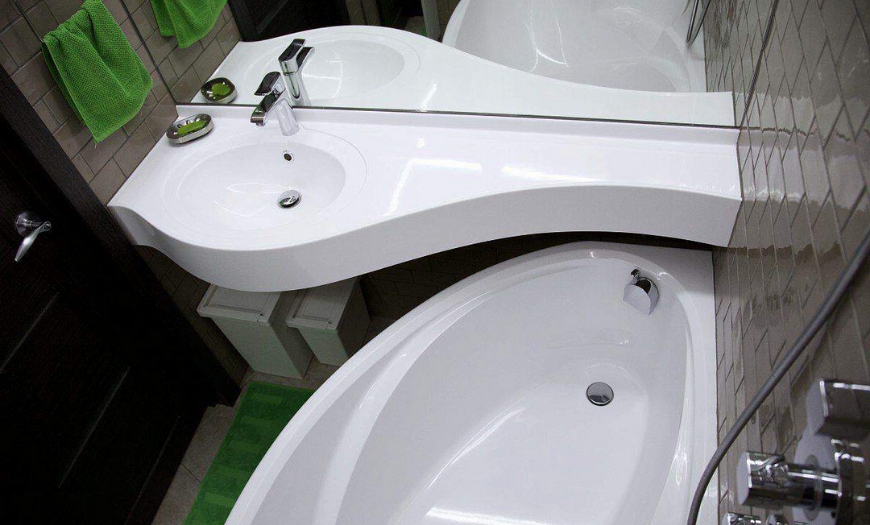 Если в комнате мало места для умывальника, то его располагают непосредственно над ванной. Такие модели меньше стандартных и хорошо вписываются в интерьер.