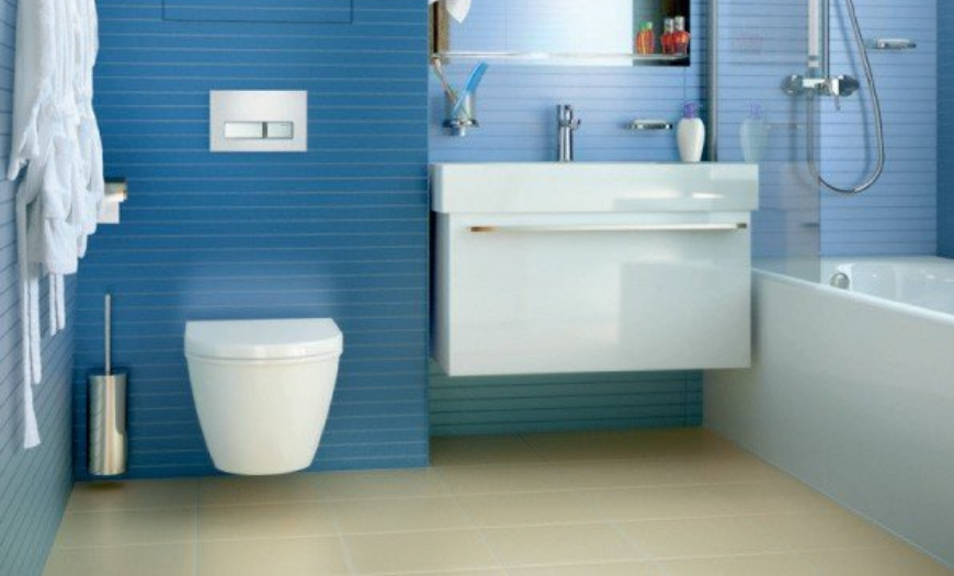 Туалет лучше выбрать подвесной (монтированный в стену), поскольку он более удобный и занимает меньше места. Кроме того, такая конструкция позволяет мыть пол под ним (грязь и влага не скапливаются вокруг). Свободный пол визуально делает пространство менее загроможденным.